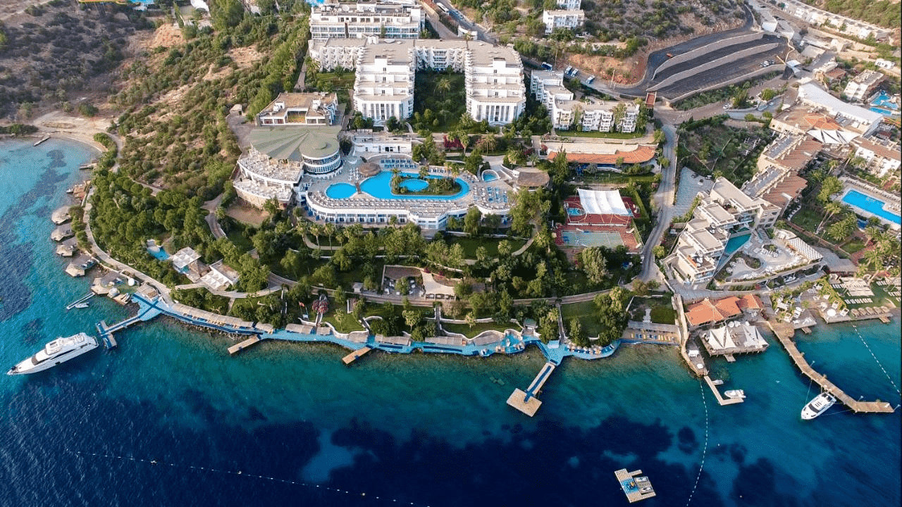 Bodrumun mərkəA 5-star luxury resort located on the shores of the Aegean Sea in the Turgutreis area of Bodrum. zində yerləşən, rahat otaqları və geniş xidmət imkanları ilə seçilən 5 ulduzlu oteldir.